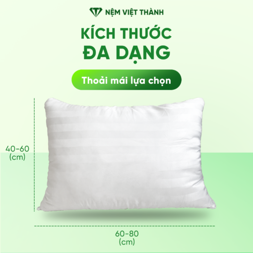 Gối nằm lông vũ Việt Thành được sản xuất với nhiều kích thước khác nhau để đáp ứng nhu cầu của từng người dùng.
