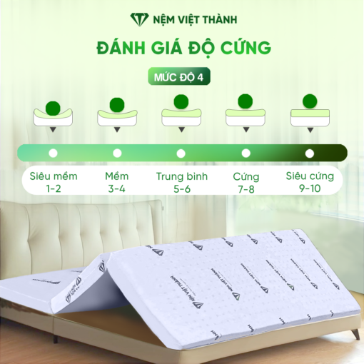 Nệm foam hoạt tính gấp 3 Việt Thành là dòng nệm foam cao cấp được thiết kế gấp 3 tiện lợi, phù hợp với không gian sống hiện đại. Sản phẩm ứng dụng foam hoạt tính mật độ cao giúp nâng đỡ cơ thể, hỗ trợ cột sống, đồng thời có khả năng kháng khuẩn và chống ẩm mốc hiệu quả, mang lại giấc ngủ êm ái và an toàn cho sức khỏe.