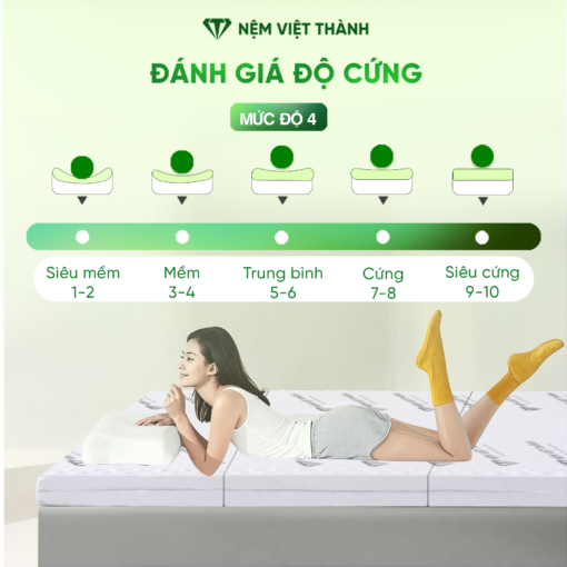 Với thiết kế gấp 3 linh hoạt, nệm foam massage hoạt tính gấp 3 Việt Thành có thể dễ dàng gấp gọn khi không sử dụng, giúp tiết kiệm diện tích phòng ngủ và thuận tiện cho việc di chuyển hoặc cất giữ. Đây là lựa chọn phù hợp cho các căn hộ nhỏ, phòng trọ, homestay hoặc gia đình cần một chiếc nệm phụ khi có khách.