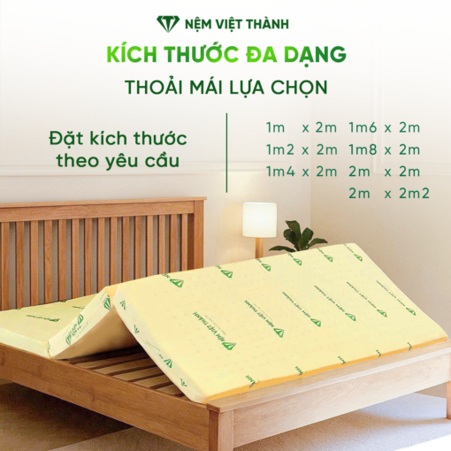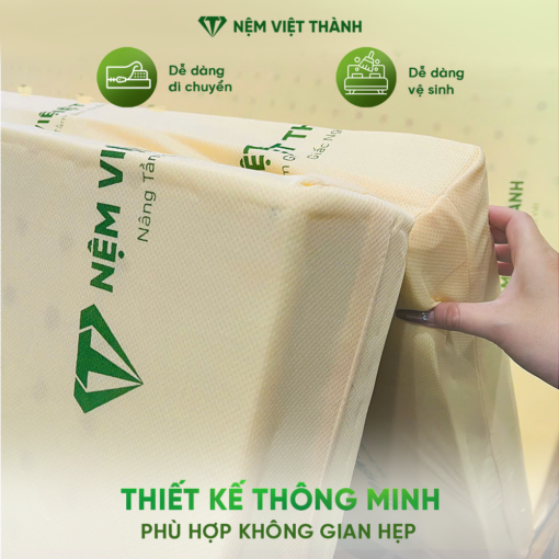Không chỉ mang lại giấc ngủ êm ái, nệm foam vita gấp 3 còn có thiết kế gấp gọn thành ba phần, giúp tiết kiệm diện tích và thuận tiện cho việc di chuyển hoặc cất giữ. Đây là lựa chọn lý tưởng cho nhiều không gian sống như phòng ngủ gia đình, căn hộ nhỏ, phòng trọ hoặc nhà có diện tích hạn chế.