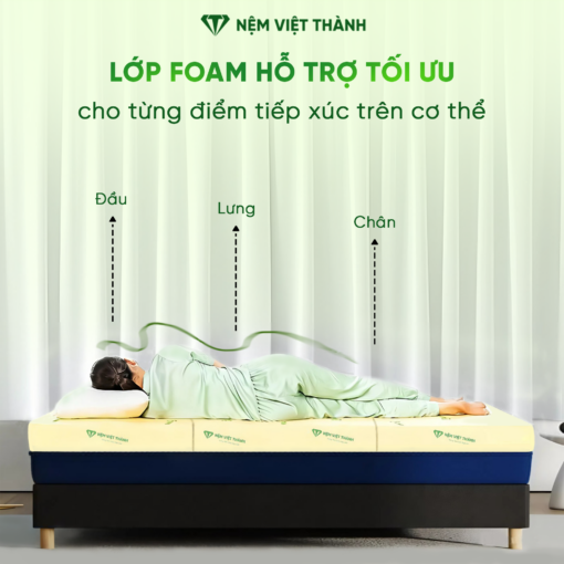 Đây là một trong những yếu tố giúp nệm foam vita gấp 3 mang lại trải nghiệm giấc ngủ chất lượng. Ngoài ra, memory foam còn giúp phân tán trọng lượng cơ thể đều hơn trên bề mặt nệm, giúp người nằm cảm thấy êm ái và dễ chịu hơn.