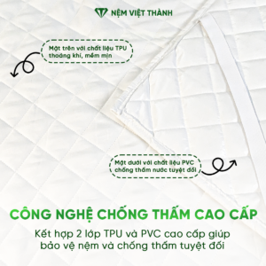 Trong quá trình sử dụng, nệm rất dễ bị thấm mồ hôi, nước hoặc chất lỏng gây ẩm mốc và mùi khó chịu. Ga giường chống thấm Cotton Việt Thành là giải pháp tối ưu giúp bảo vệ nệm hiệu quả, đồng thời vẫn đảm bảo cảm giác êm ái, thoáng mát khi nằm.