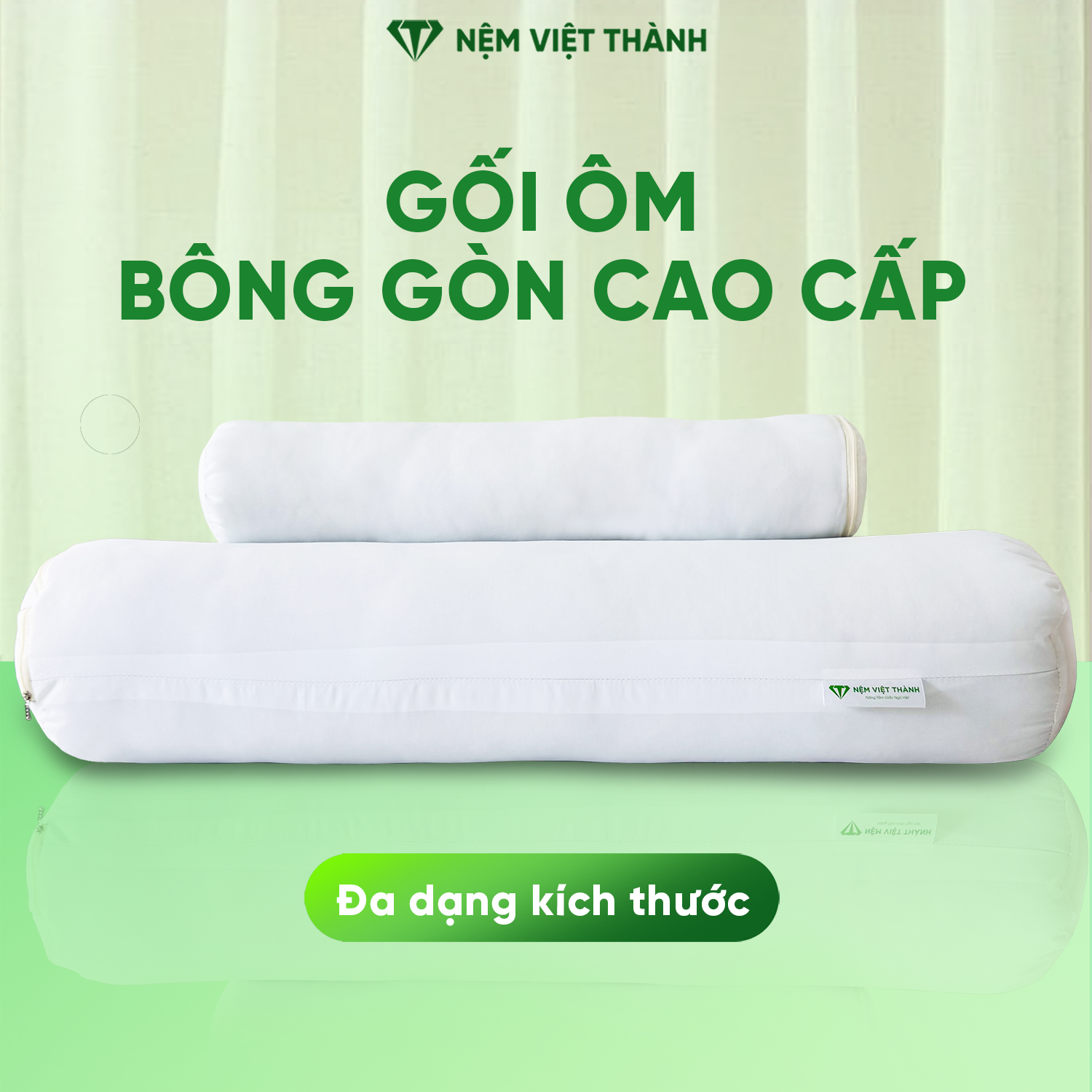 Gối ôm gòn Việt Thành là dòng gối ôm cao cấp sử dụng ruột gòn Polyester 100%, được hút chân không và vo thành các viên gòn bi nhỏ giúp gối luôn giữ độ phồng, êm ái và không xẹp lún nhanh.