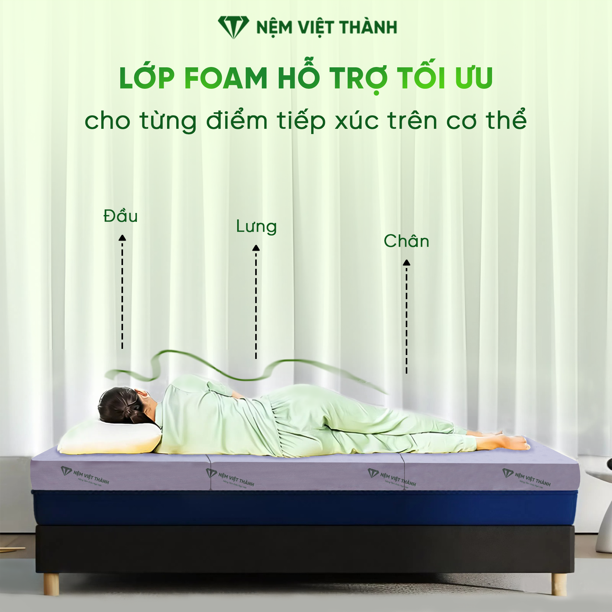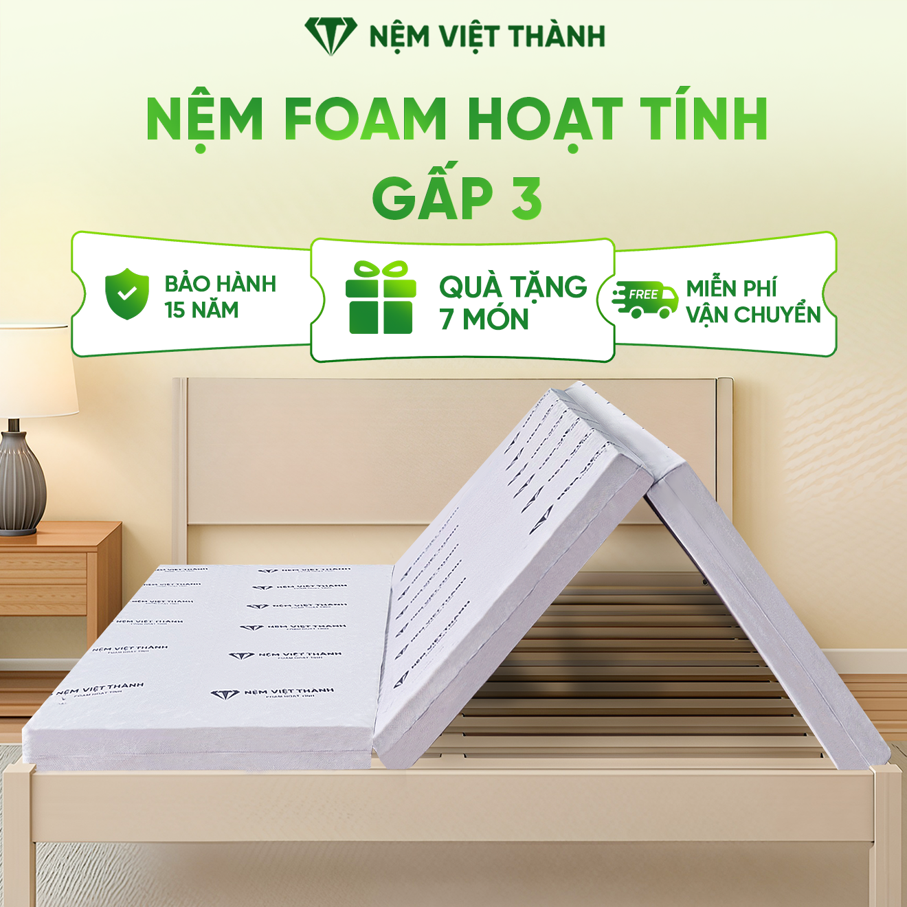 - Tên sản phẩm: Nệm Foam Hoạt Tính Gấp 3 Việt Thành